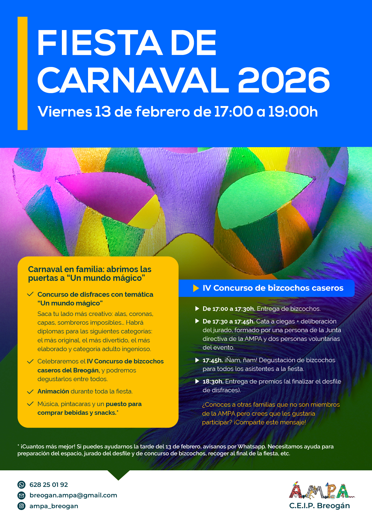 Será una tarde para encontrarnos, mezclar generaciones, inventar mundos y dejar que el cole respire comunidad y color. Os animamos a venir disfrazados, con ganas de participar y, sobre todo, de disfrutar juntos de esta celebración tan especial.