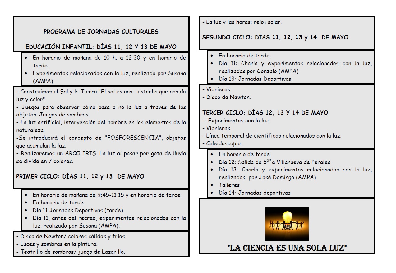 La próxima semana celebraremos en el Colegio la semana cultural y deportiva. Las jornadas están repletas de actividades pensadas para el disfrute y aprendizaje de nuestros hijos/as. Desde el AMPA colaboramos junto con algunos padres y madres voluntarios en la realización de tres talleres con experimentos para los alumnos.