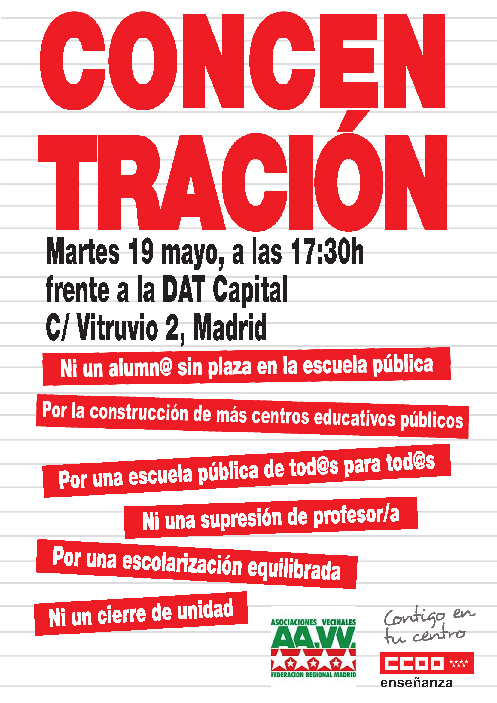 – Concentración ante la DATC (C/Vitruvio, nº2) el martes 19 de Mayo a las 17:30.