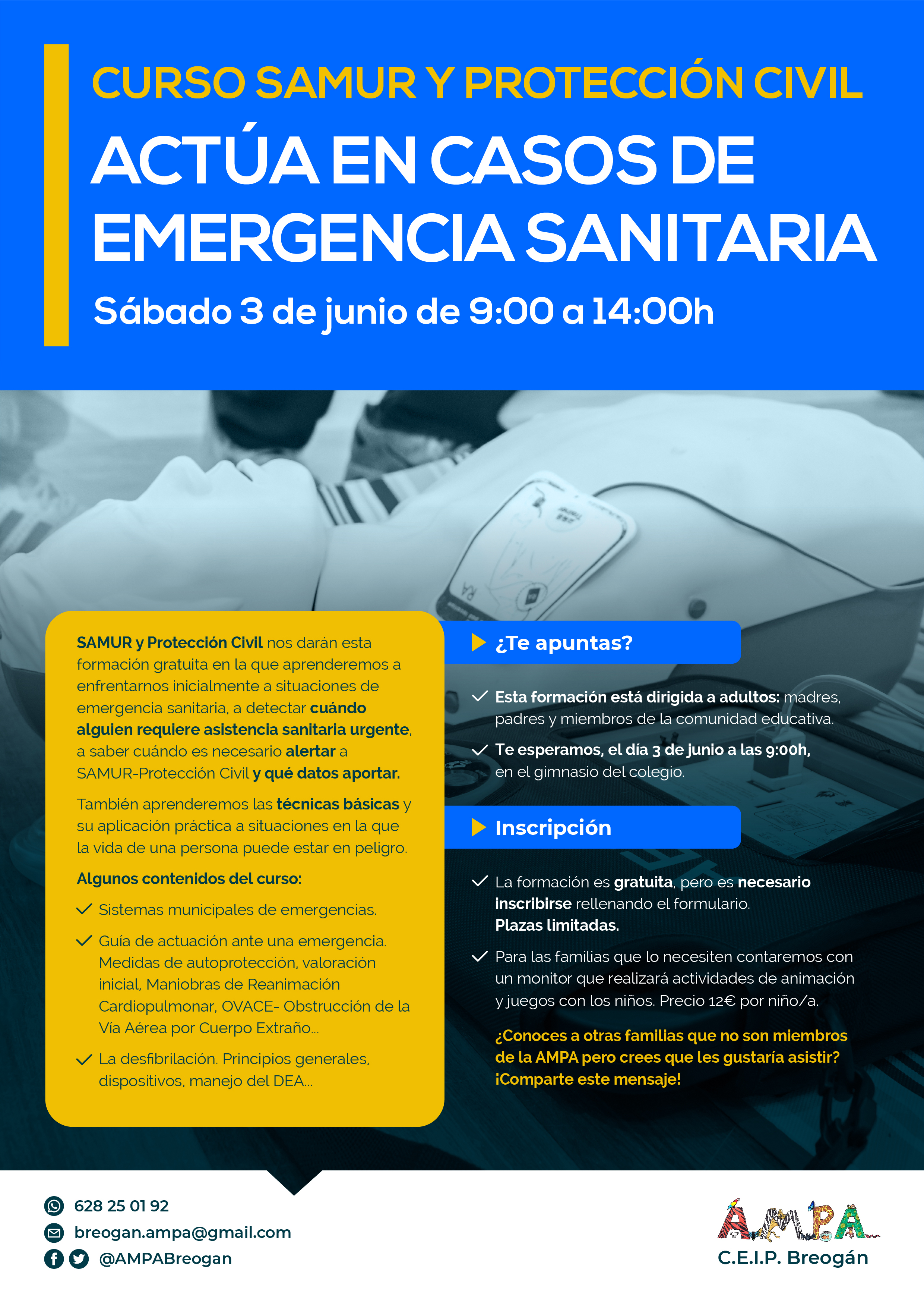 SAMUR y Protección Civil vendrán hasta el colegio para impartir una formación dirigida a padres y madres.