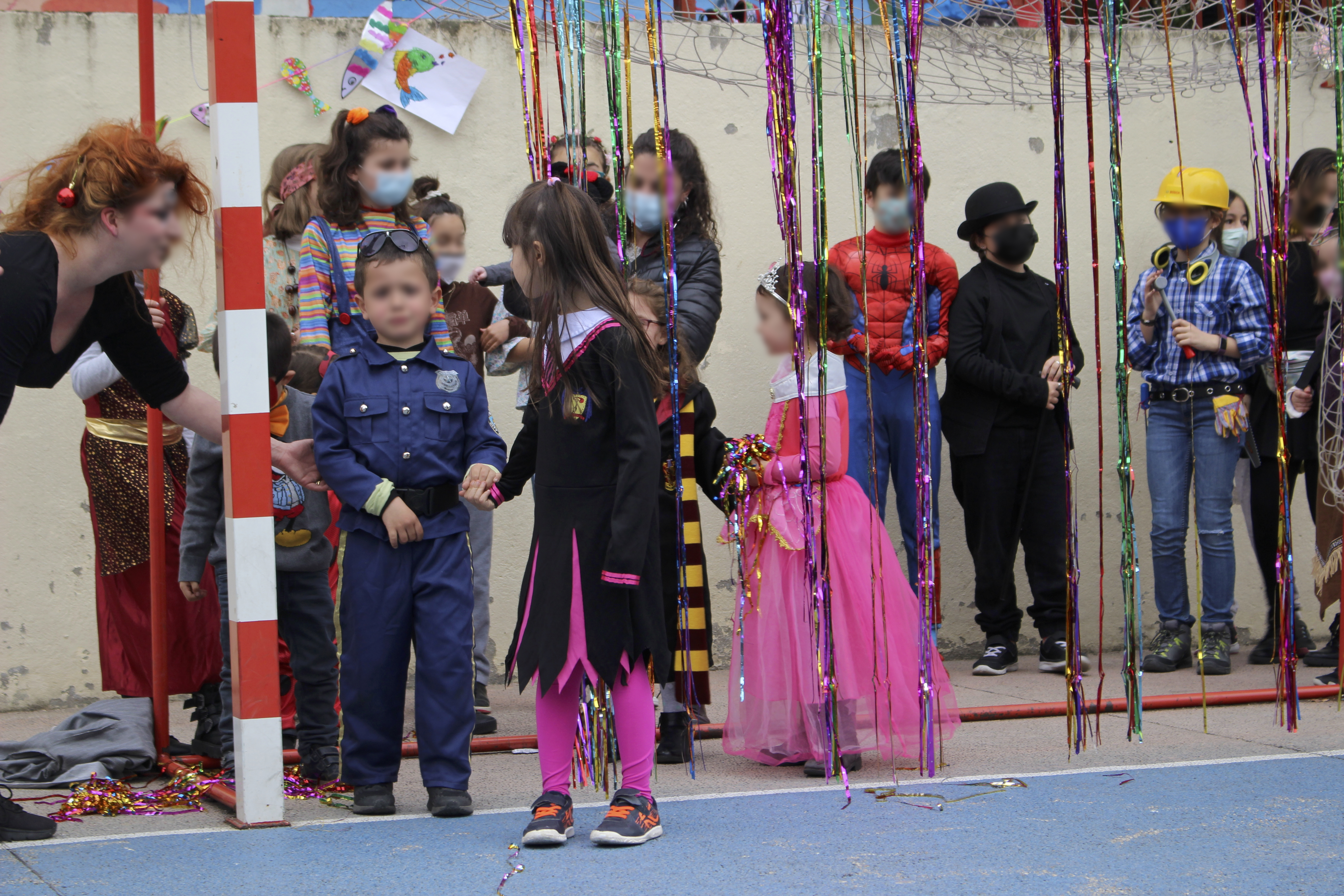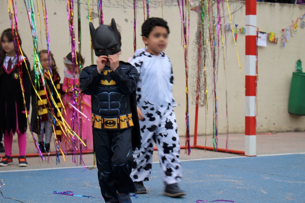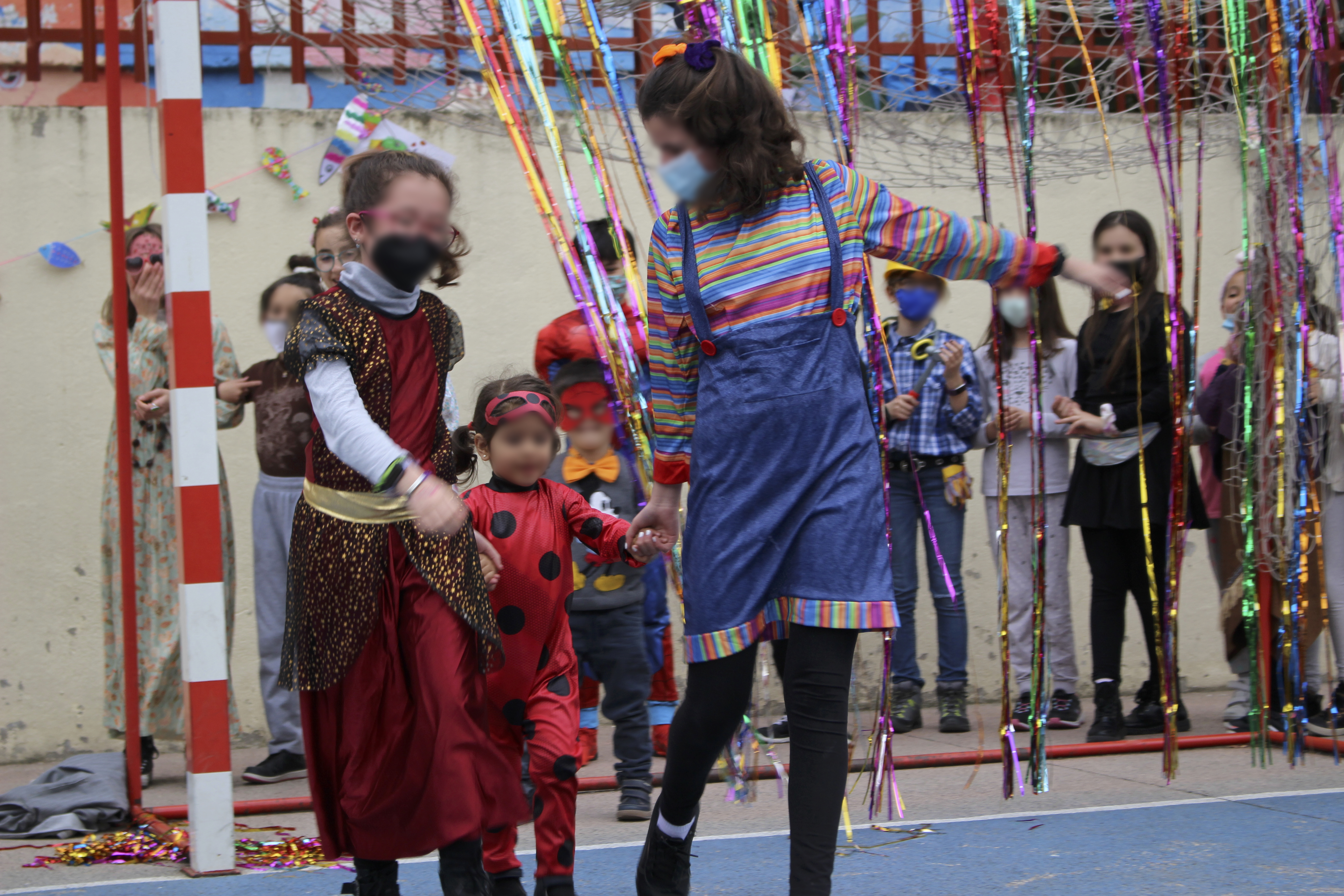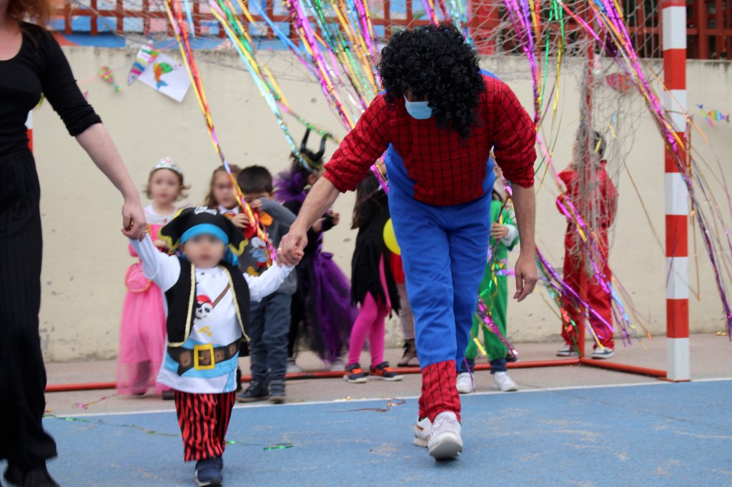 Además de globos y serpentinas, las guirnaldas de máscaras y sardinas decoradas por los niños y niñas, decoraron el patio. Los disfraces nos encantaron -¡los de padres y madres, también!-.