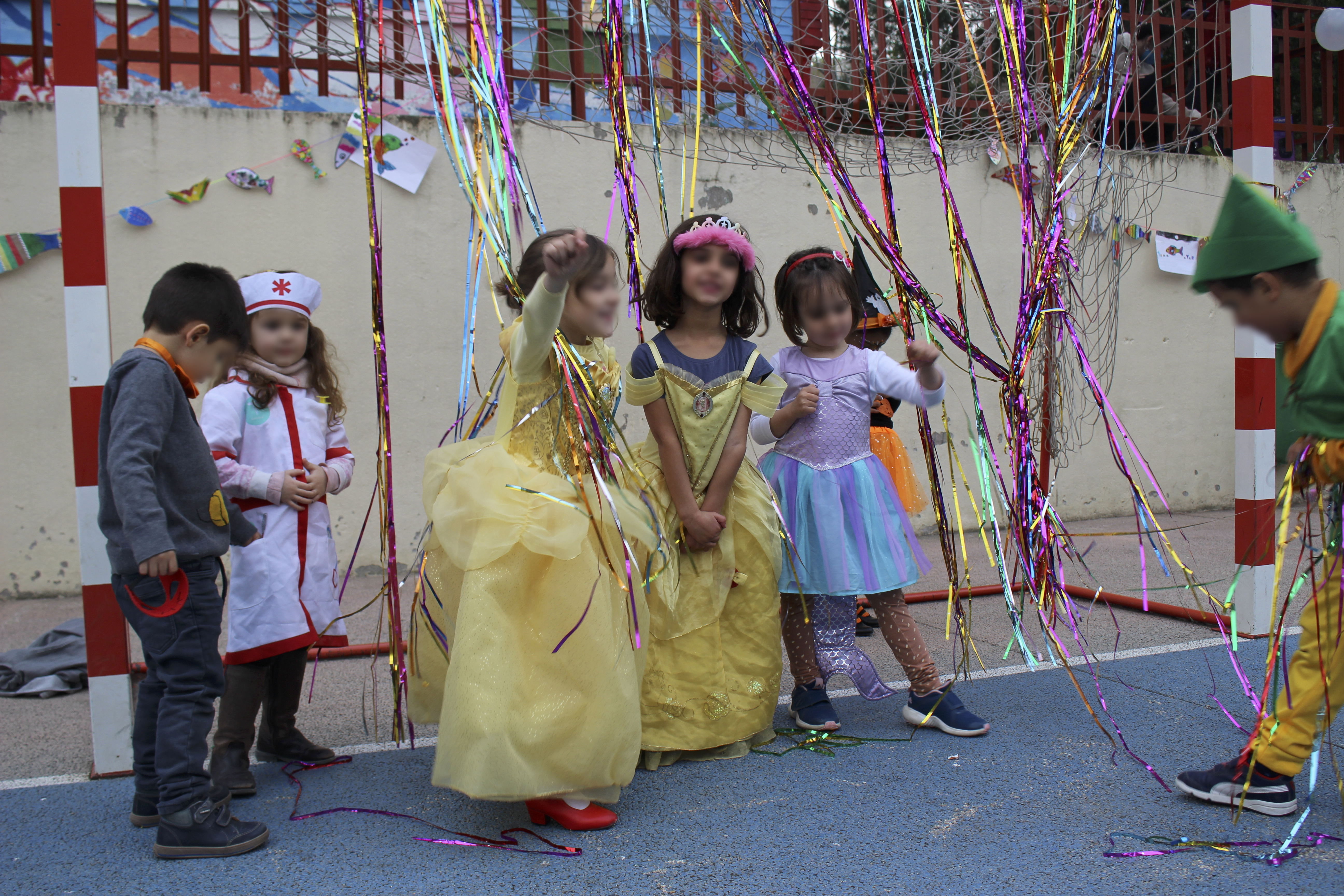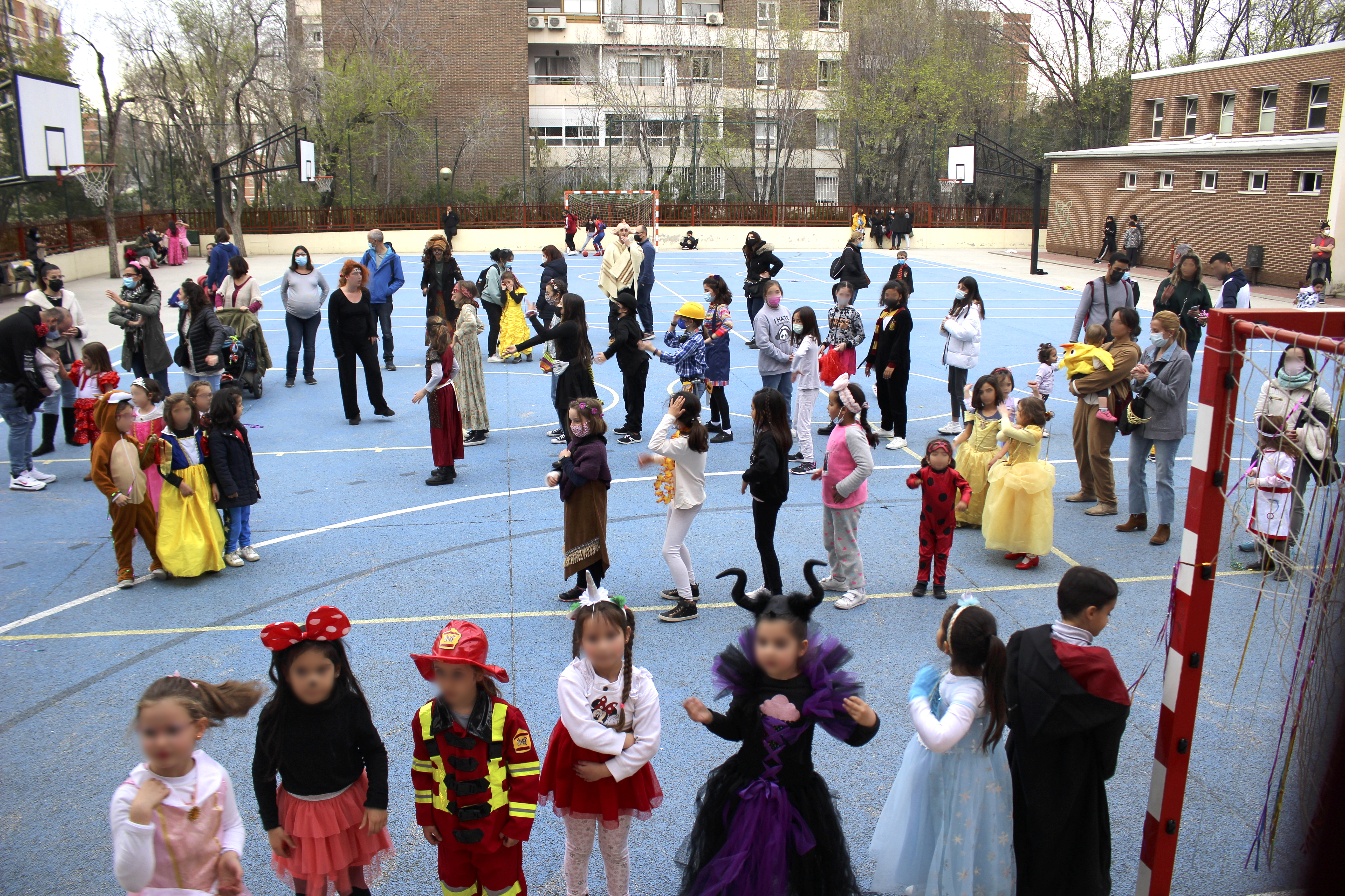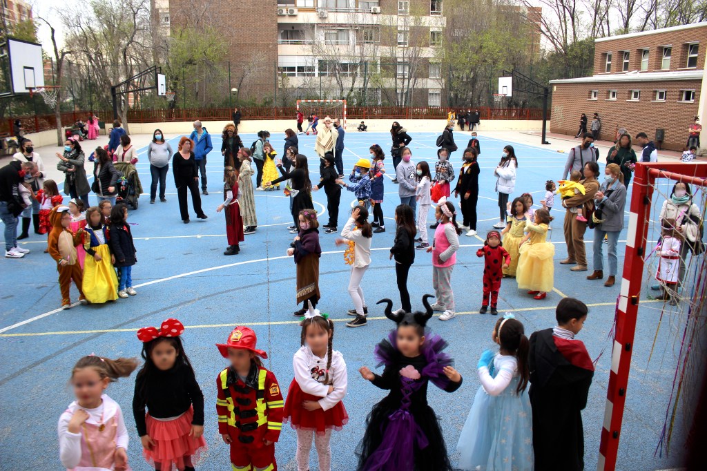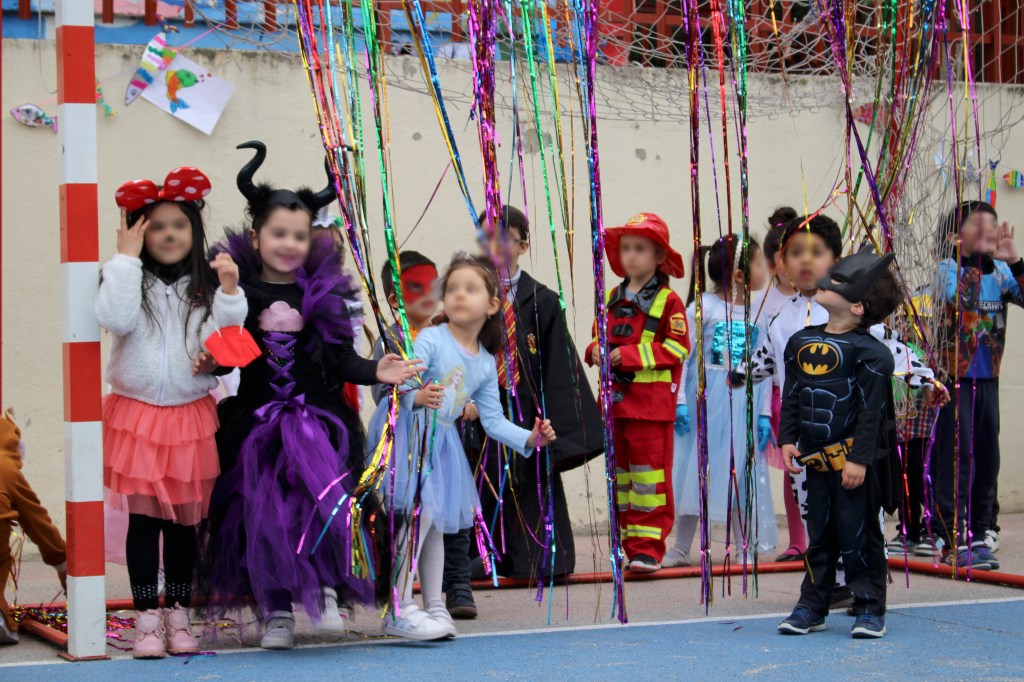 Además de globos y serpentinas, las guirnaldas de máscaras y sardinas decoradas por los niños y niñas, decoraron el patio. Los disfraces nos encantaron -¡los de padres y madres, también!-.
