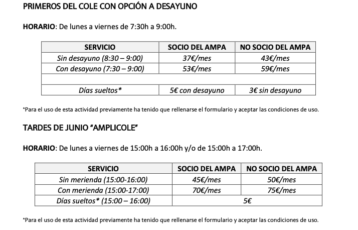 Encuentra en el botón toda la información sobre las actividades extraescolares: dossier, horarios, formulario de preinscripción.