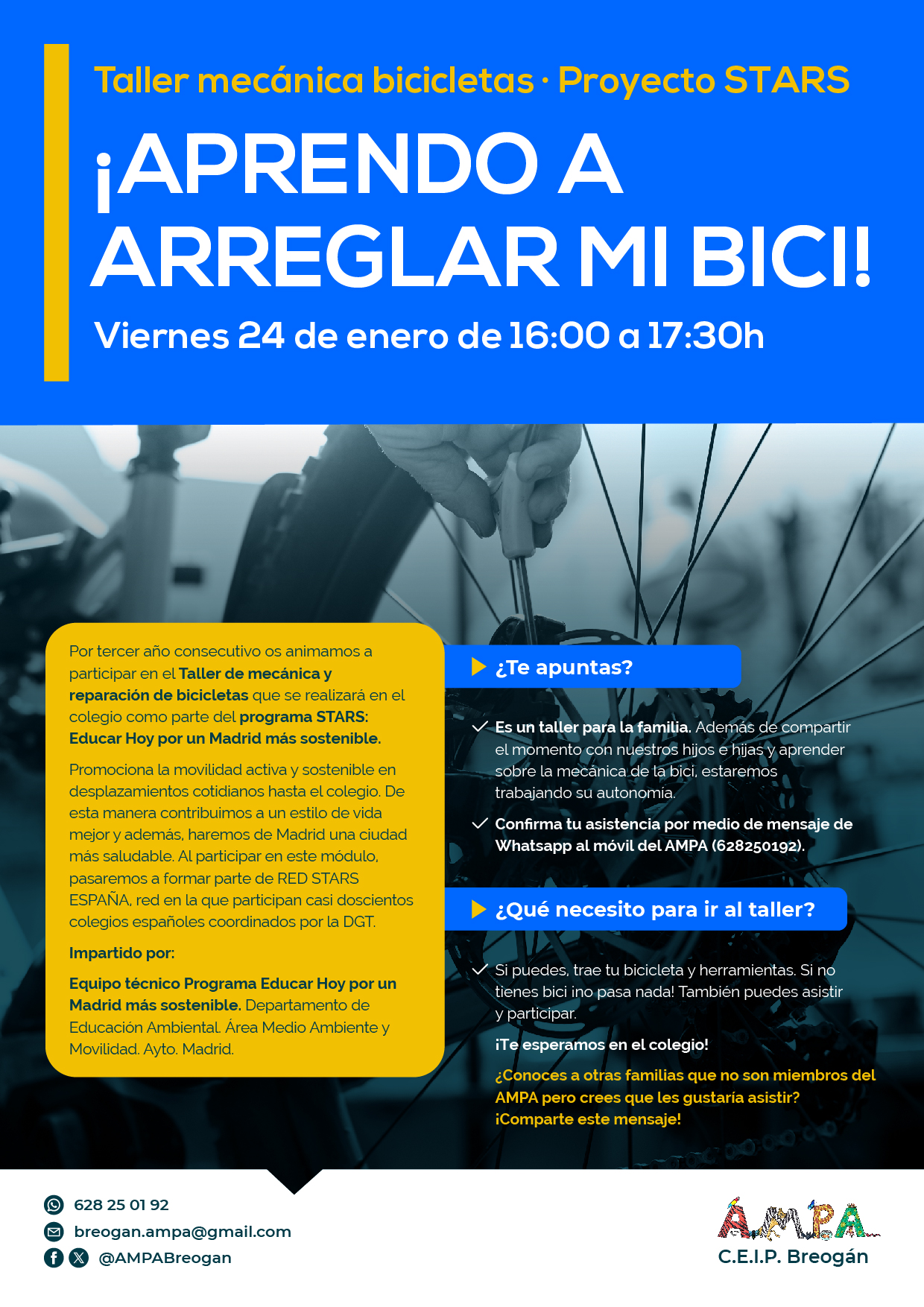 Un año más se lleva a cabo el taller de mecánica y reparación de bicicletas como parte del proyecto STARS. Siempre una buena ocasión para aprender a arreglar nuestras bicis y además, dejarlas preparadas con la ayuda de profesionales.
